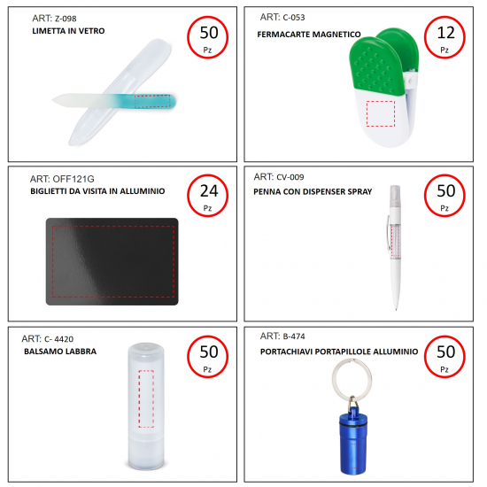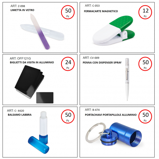 | Quantità | Prodotto | Incisione | Totale |