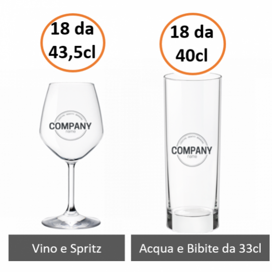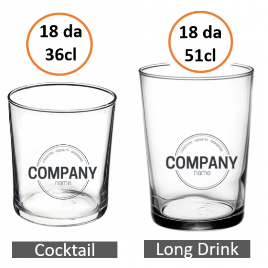 Con 6 bicchieri diversi per tipologia, per qualsiasi beverage ordinano i tuoi clienti, crei in ogni tavola l'atmosfera del tuo BRAND con soli 108 bicchieri